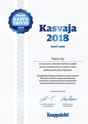 Fescon Oy on kasvanut viimeisen kolmen vuoden aikana merkittävästä ja ansainnut siten paikkansa Kasvaja-yrityksenä.