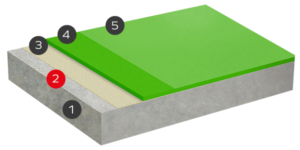 1. Betonialusta2. Tasoitteena esimerkiksi: Fescon Flow CS tai FlowPlan (tarvittaessa)3. Nanten HM Bio Low VOC4. Nanten PU Flex Bio5. Nanten PU W2